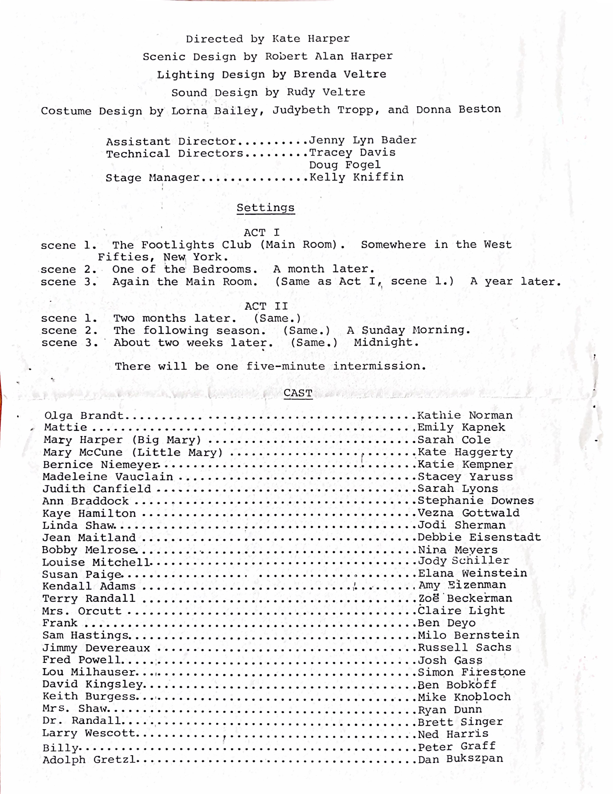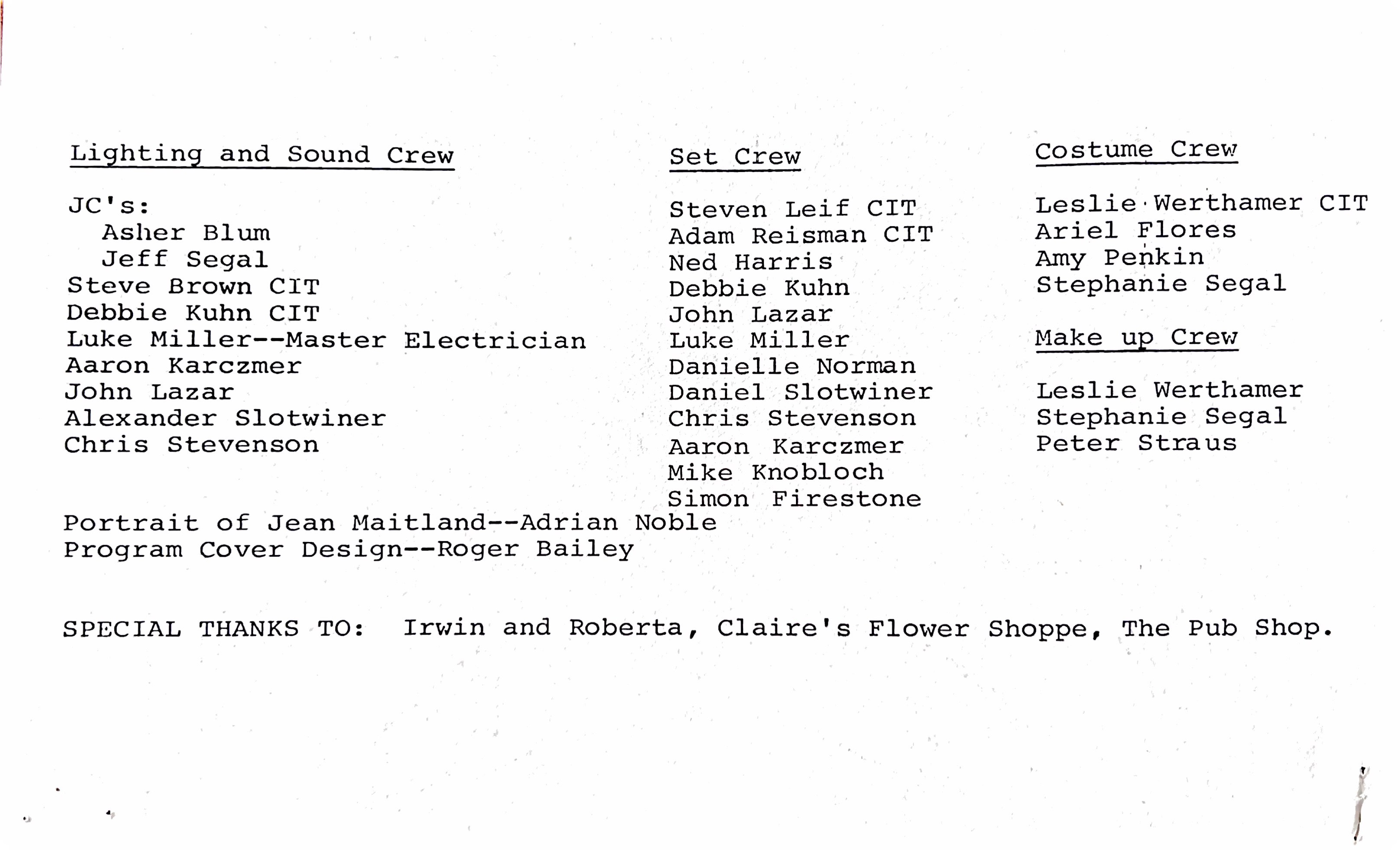 Presented by the Theatre shop in 1985 at the Summer Theater.