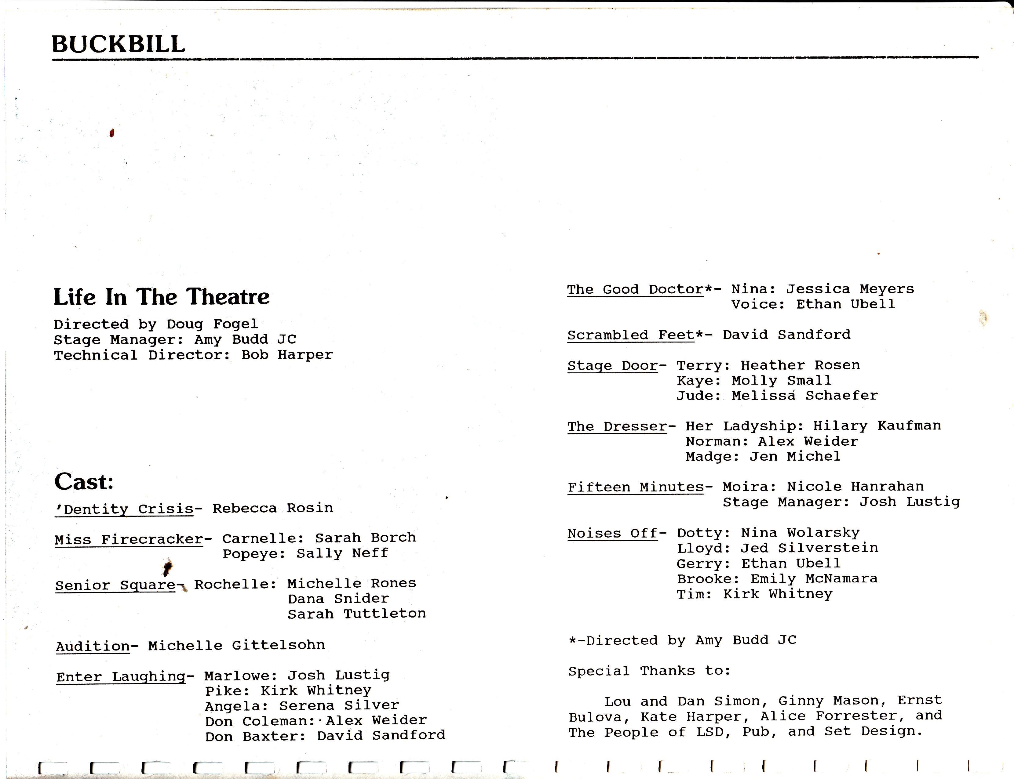 | Stage Manager | Amy Budd | also directed "The Good Doctor" and "Scrambled Feet." |