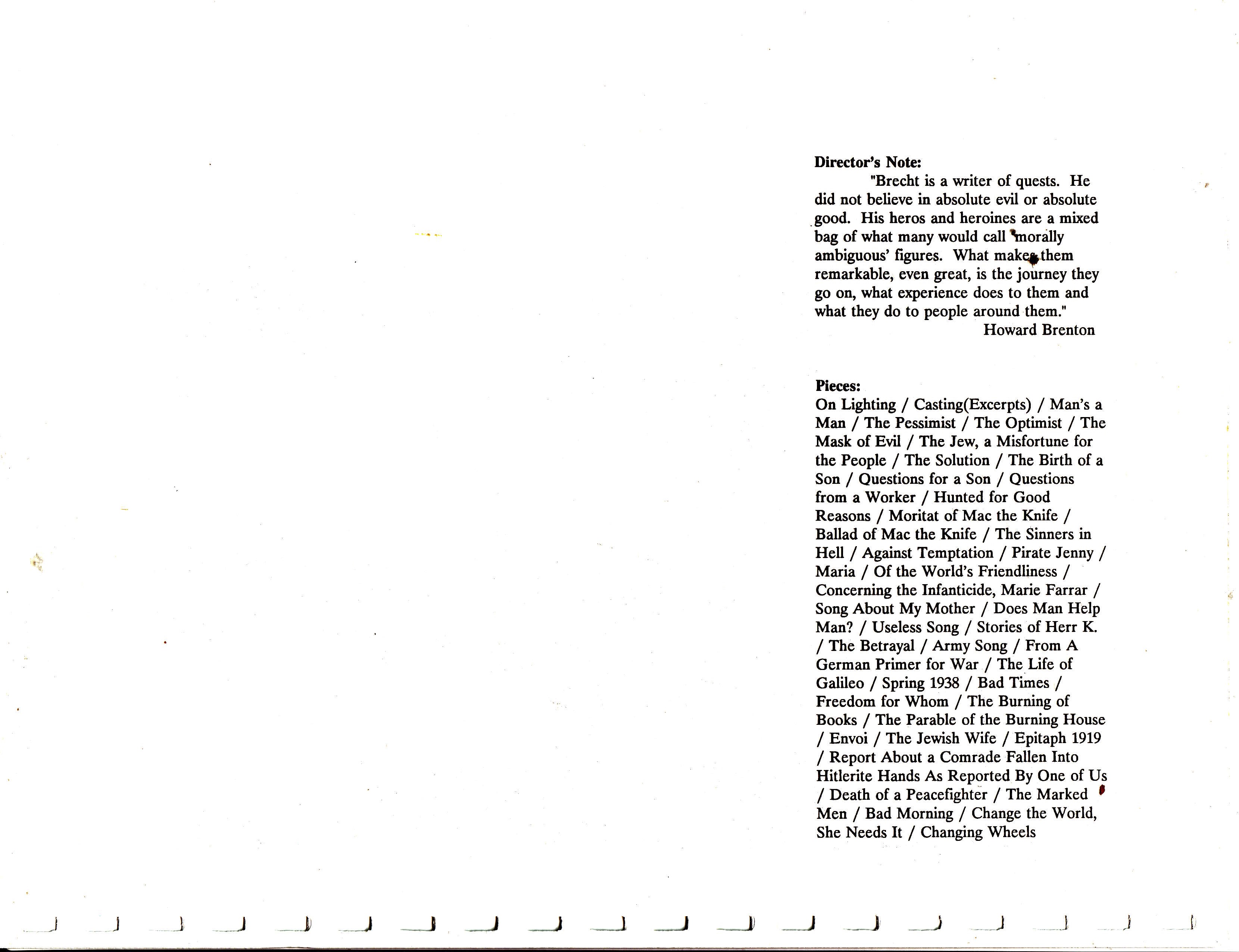 Presented by the Theatre shop on Aug 04, 1990 at the Actors' Studio.