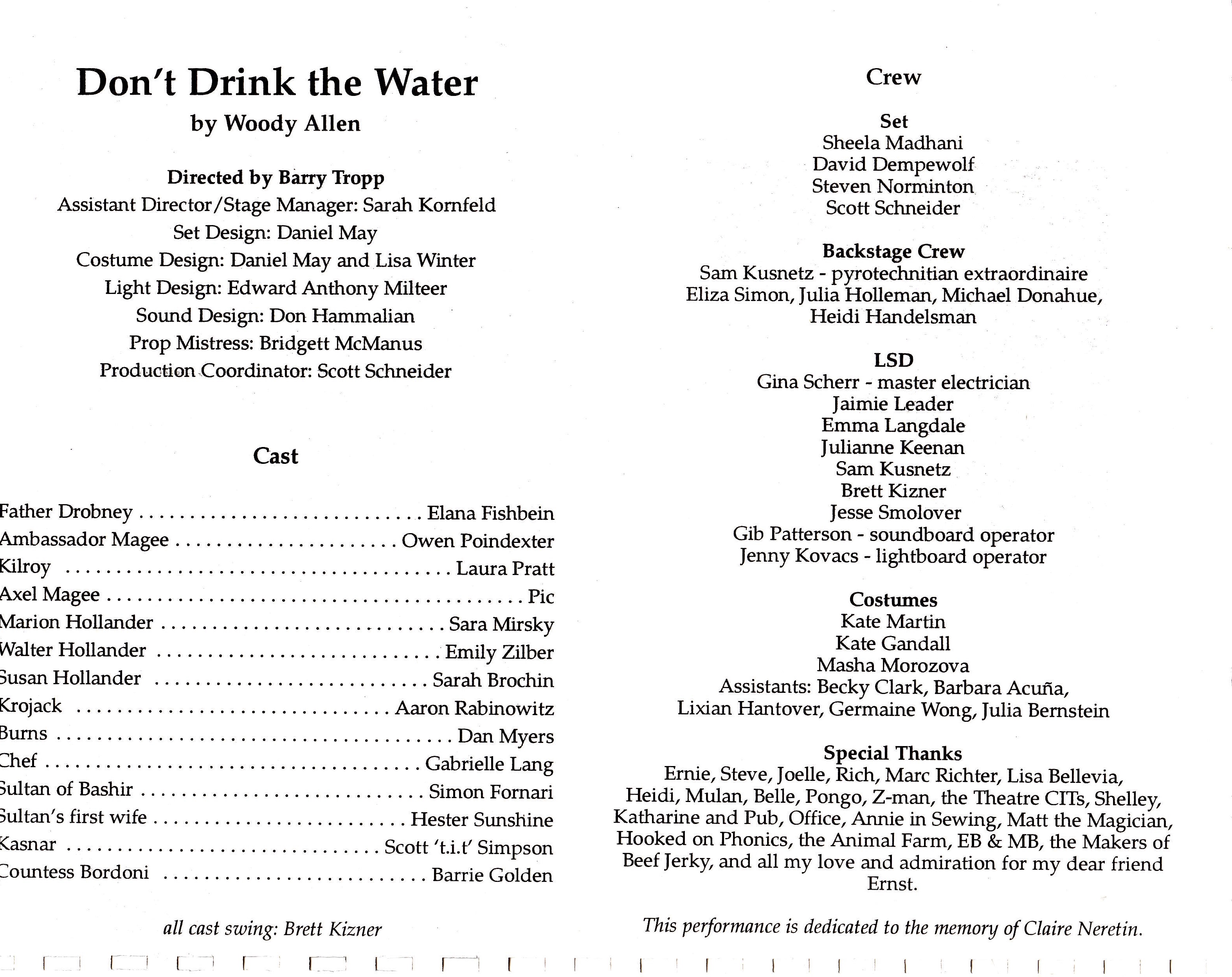 Presented by the Theatre shop on Aug 12, 1998 at the Actors' Studio.