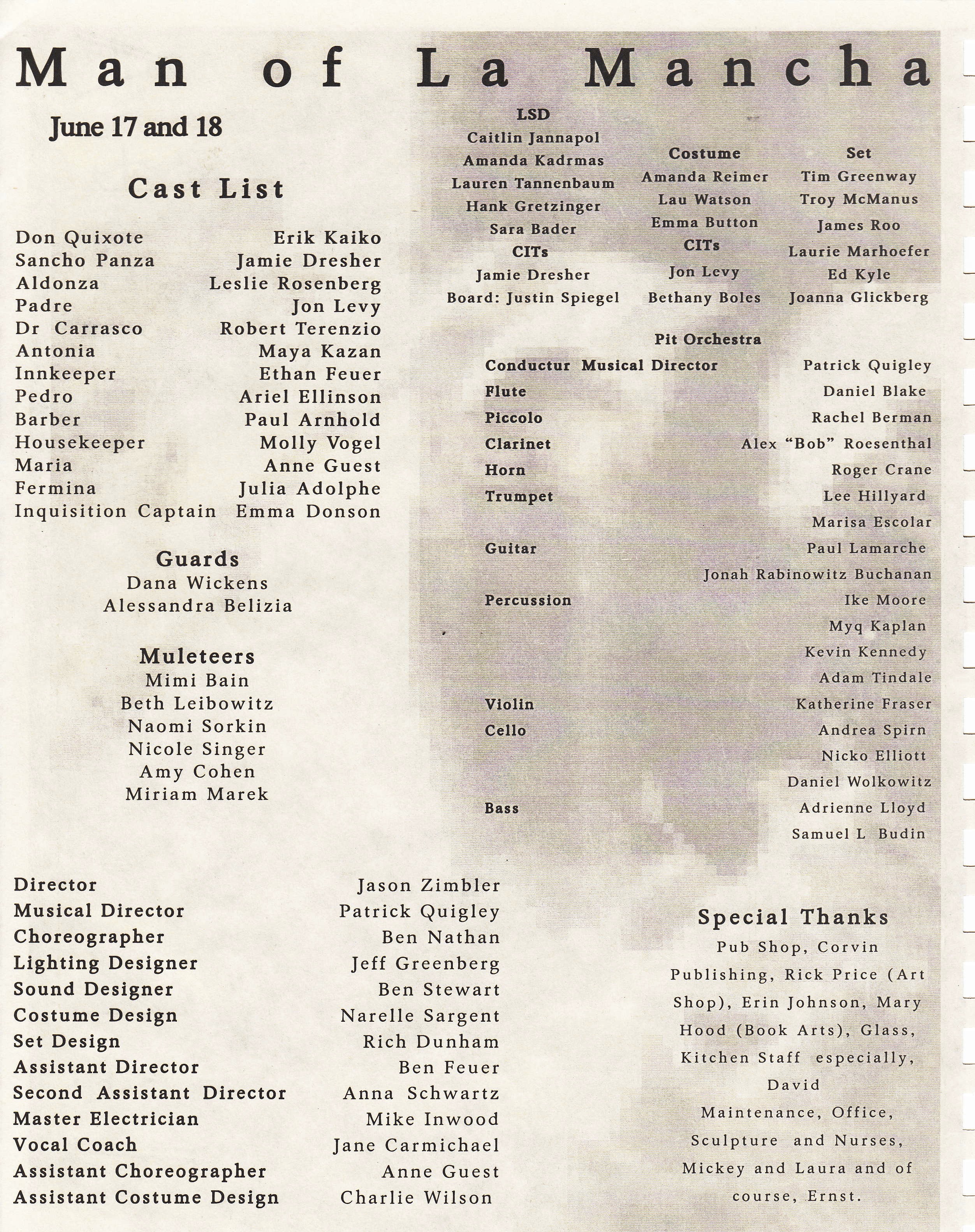 | Light Board Operator | Justin Spiegel | CIT |