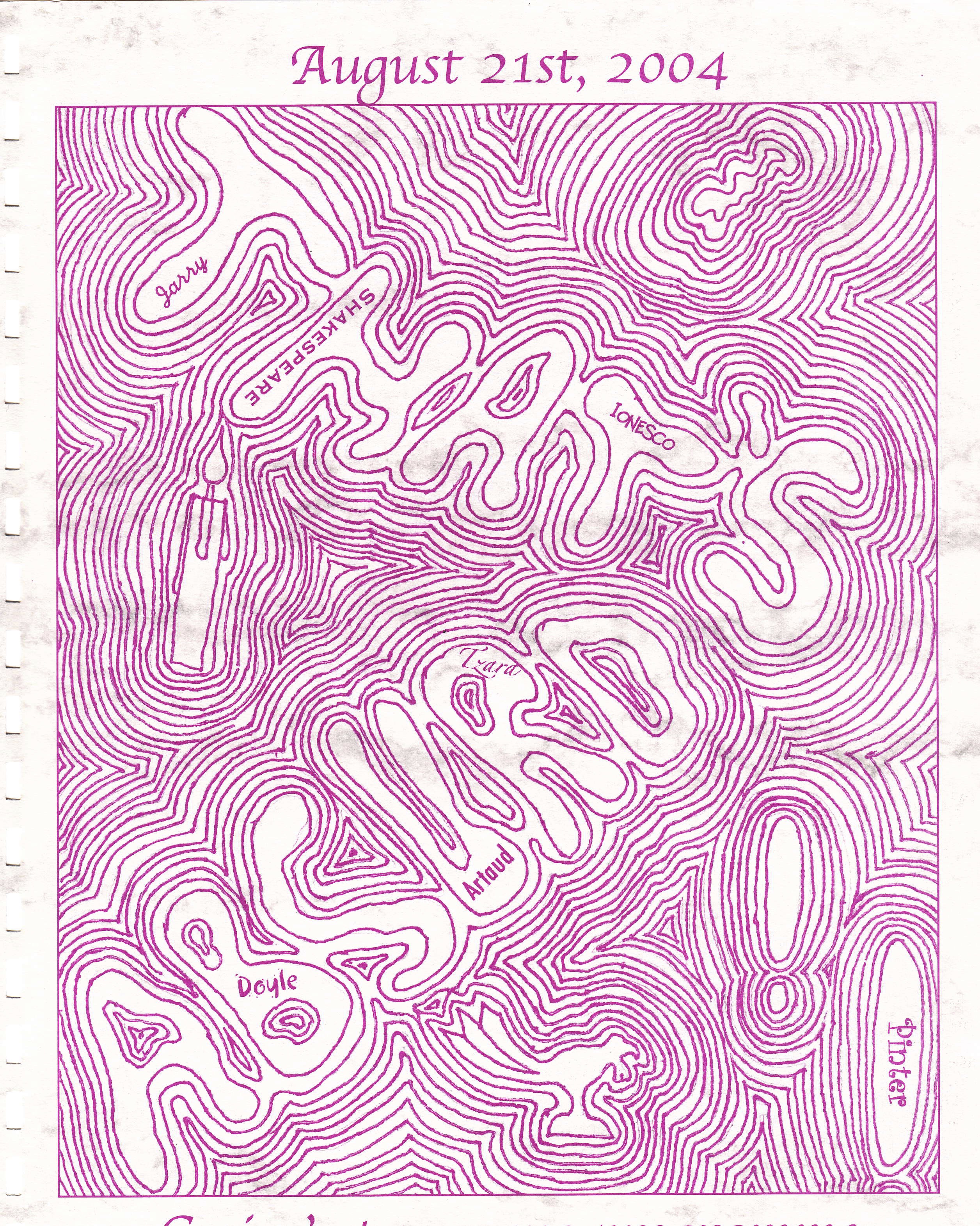 First off, let me admit that the title and idea for this show was stole from Scott Clare, who directed it when I was camper here back in 1990. Save one piece (The Lesson), this production is a significant departure from the "original." I wanted to take the audience on a tour of what let up to the theatrical movement called "Theatre of the Absurd," including classical, dadaism, surrealism, up through a modern absurdist piece. Absurdism was born out of necessity: long established forms of theatre could no longer contain the pangs of existential angst that the first world war left in its wake. Only the inventive, revolutionary spirit of the Avante Garde movement could support those demands. So, I suppose our show would be more aptly named, "That's Avante Garde!" But let's face it, that just ain't as catchy. Also this compilation deos not pretend to be an exhaustive representation of any movement per se. I must acknowledge Bethany Boles and the cast, who participated in the process of composing this presentation. As a director, I strived to serve the literal function of the title by guiding and integrating the creative impulses of the performers. Other times, however, I just forced the company to realize my blessed artistic vision. Either way, I think the show is pretty good. I hope you will too. Please like me. PLEASE. In any event, it feels food to believe that I'm better than [and here the scan is cut off.]