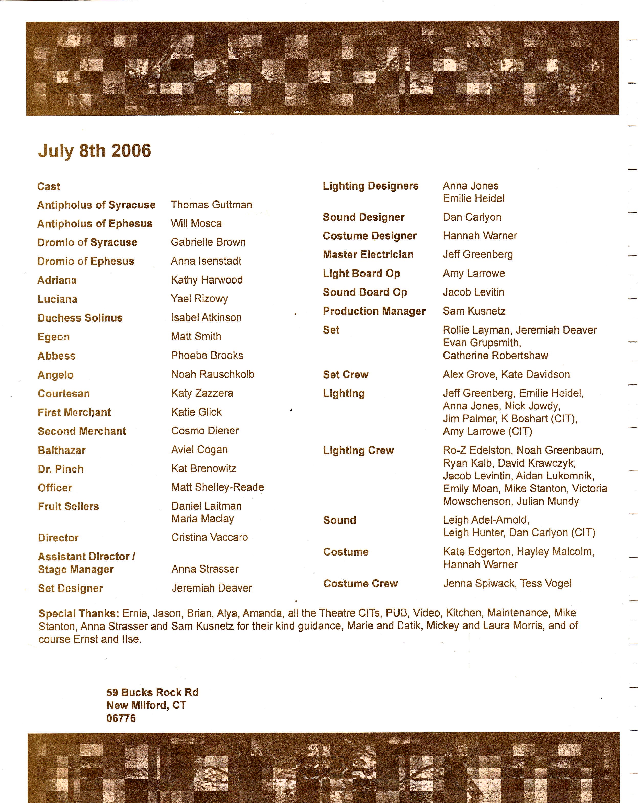 | Dromio of Syracuse | Gabrielle "Gabby" Brown | |