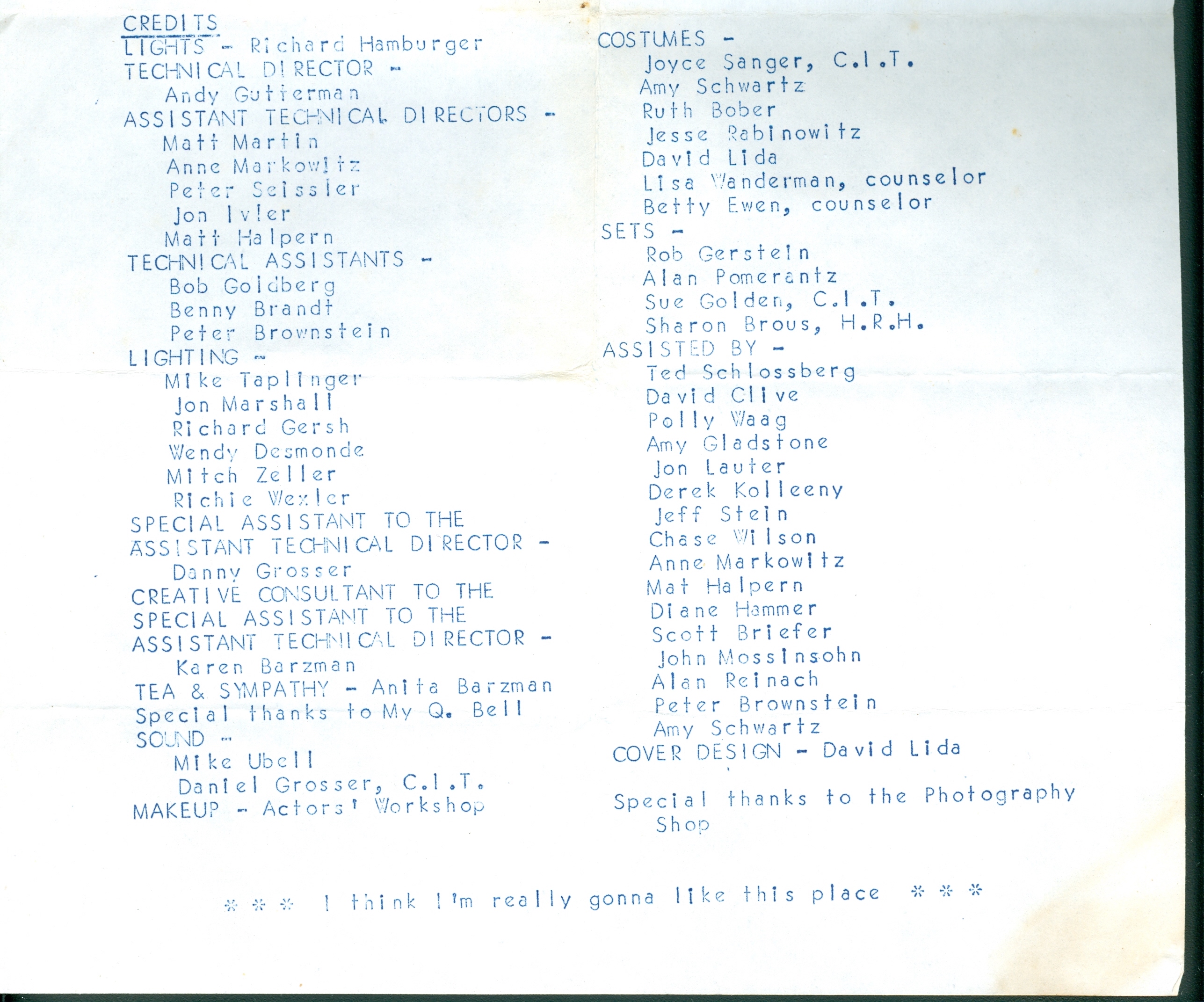 Presented by the Theatre shop in 1972 at the Summer Theater.