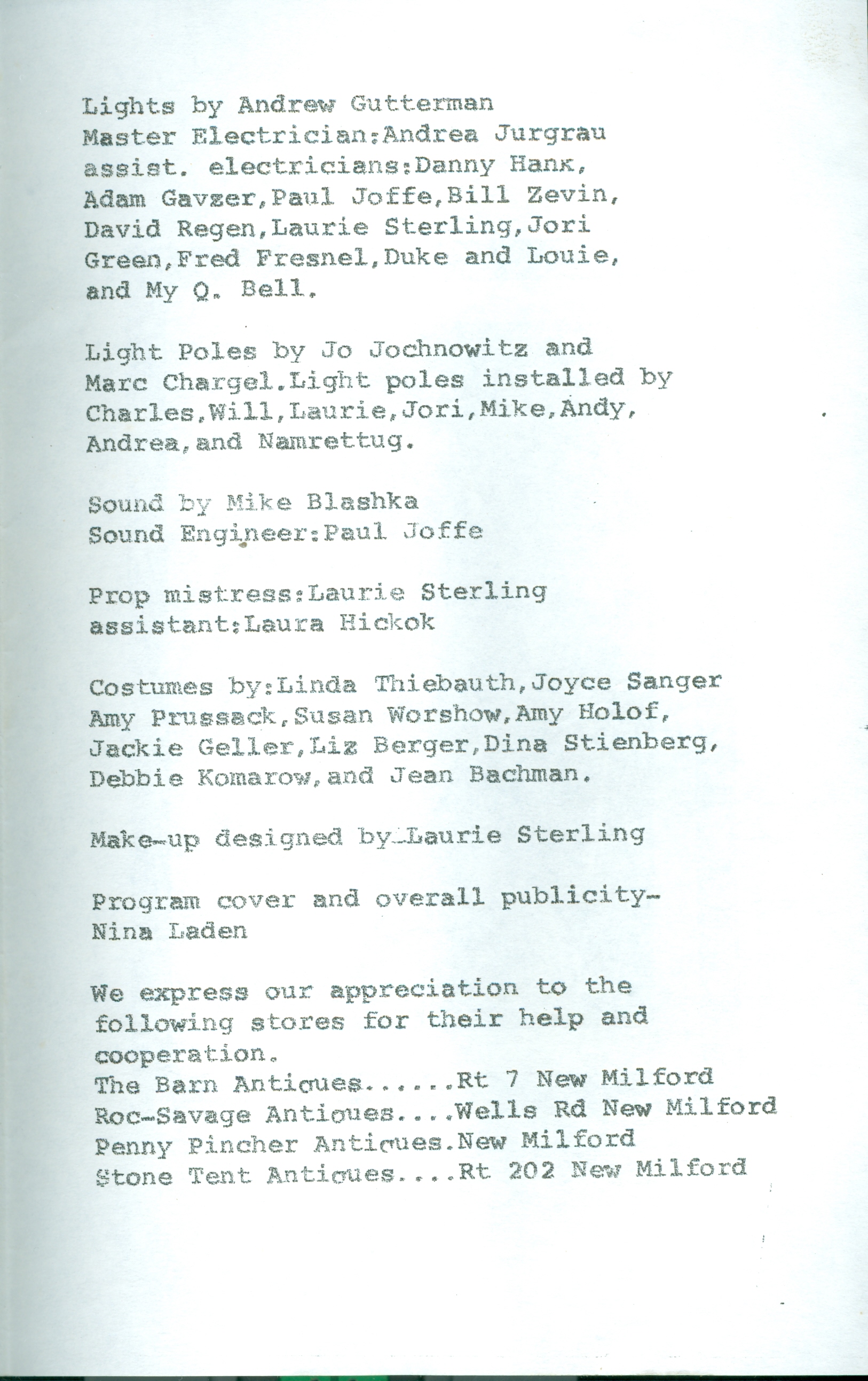 Presented by the Theatre shop in 1975 at the Summer Theater.