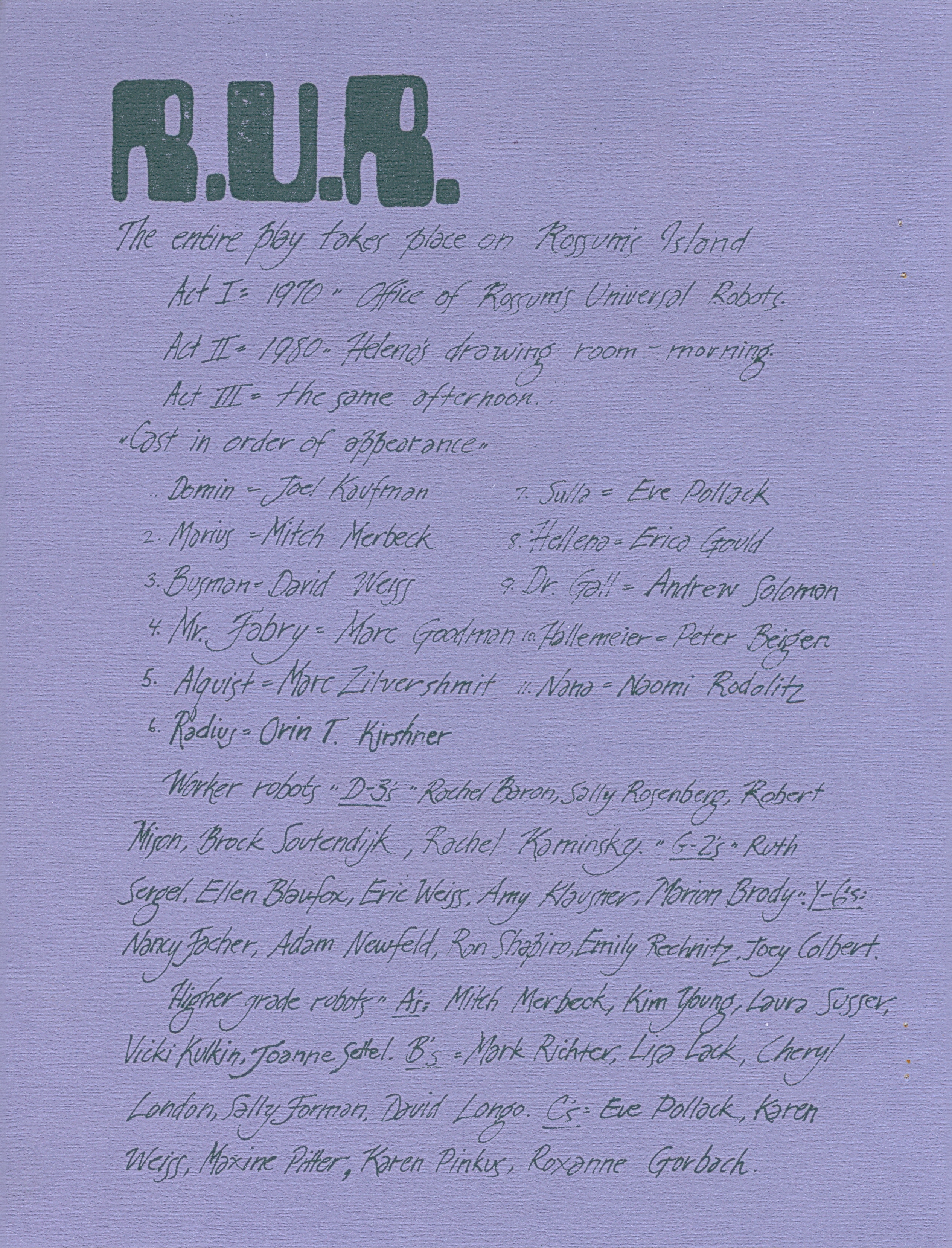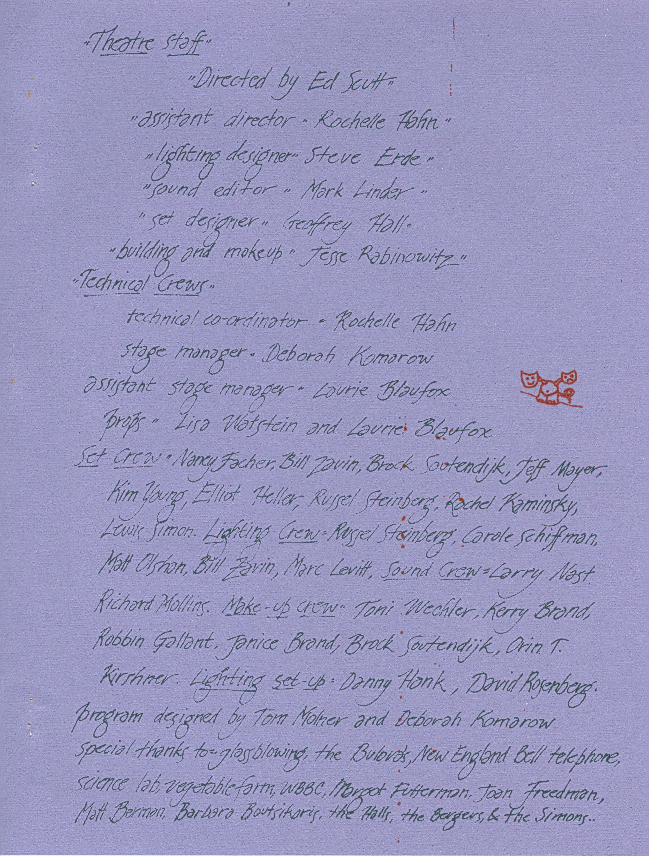 Presented by the Theatre shop in 1977 at the Summer Theater.