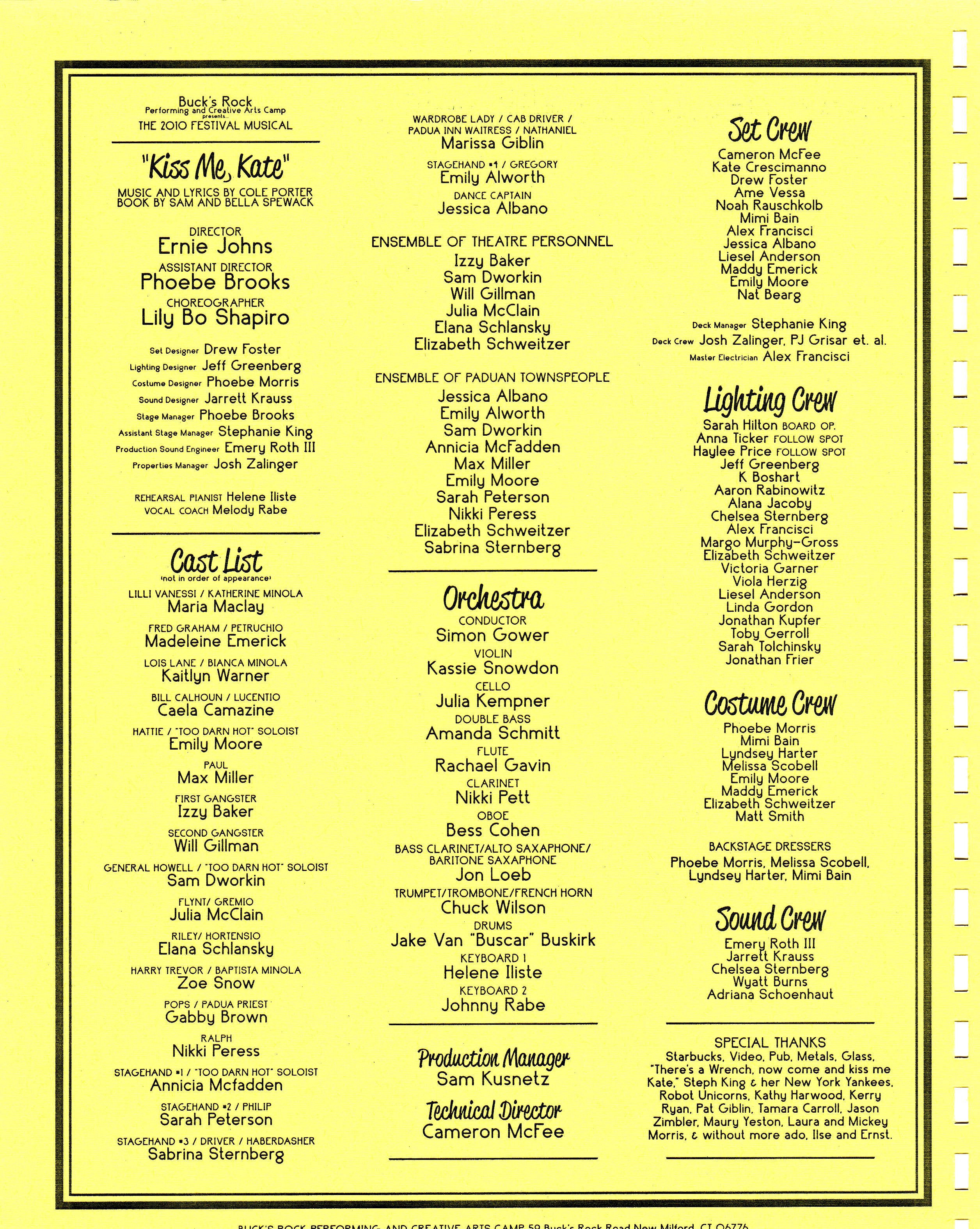 | Fred Graham / Petruchio | Maddox Emerick | Credited as "Madeleine Emerick." |