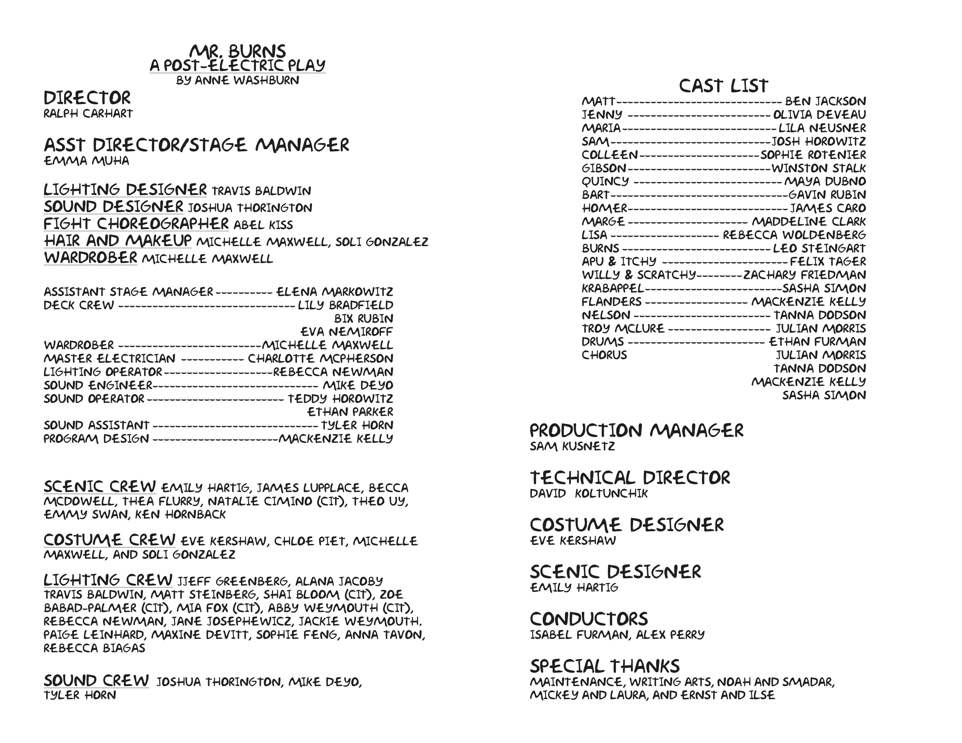 | Lighting Crew | Zoe Babad-Palmer | CIT |