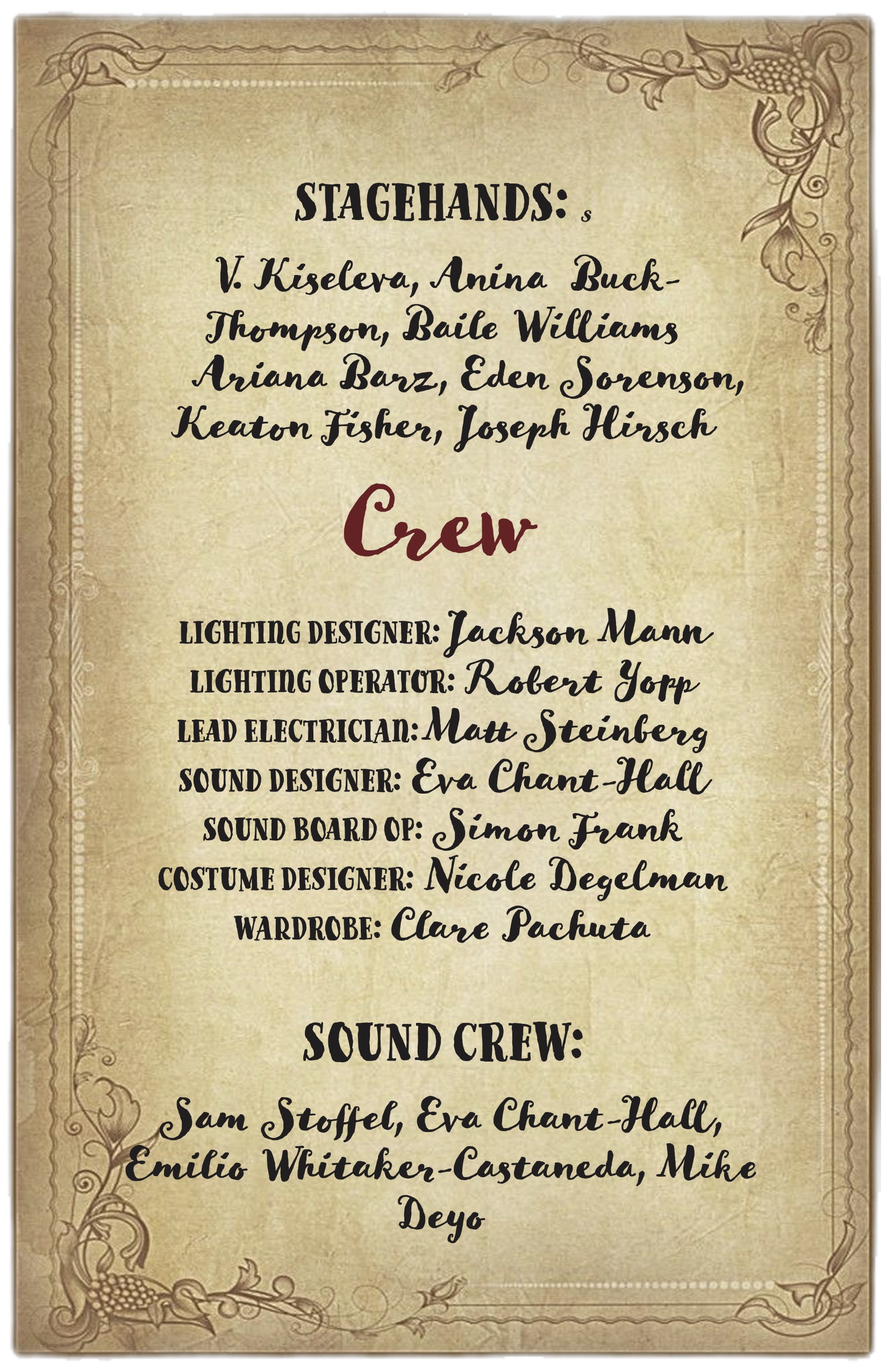 | Sound Crew | Eva Chant-Hall | |