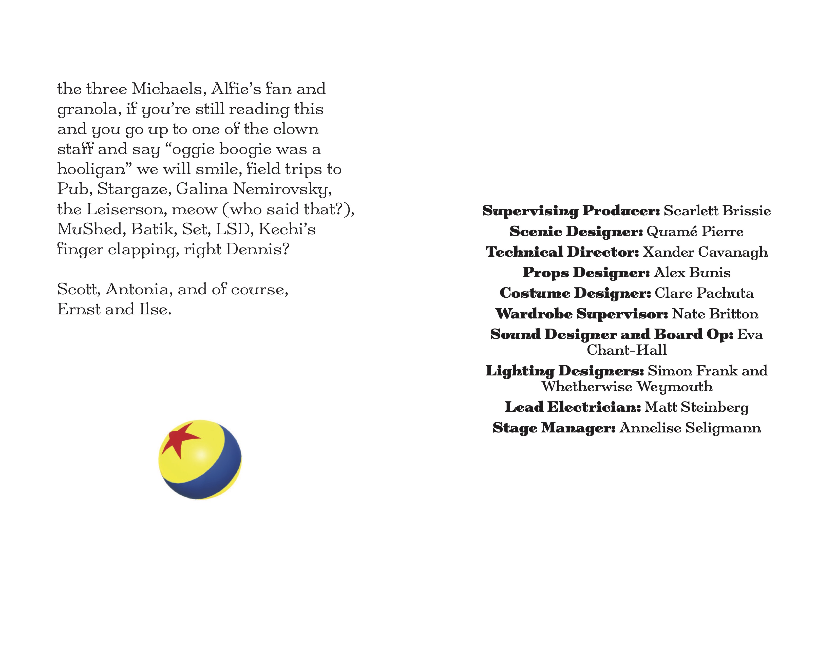 | Lead Electrician | Matt Steinberg | |