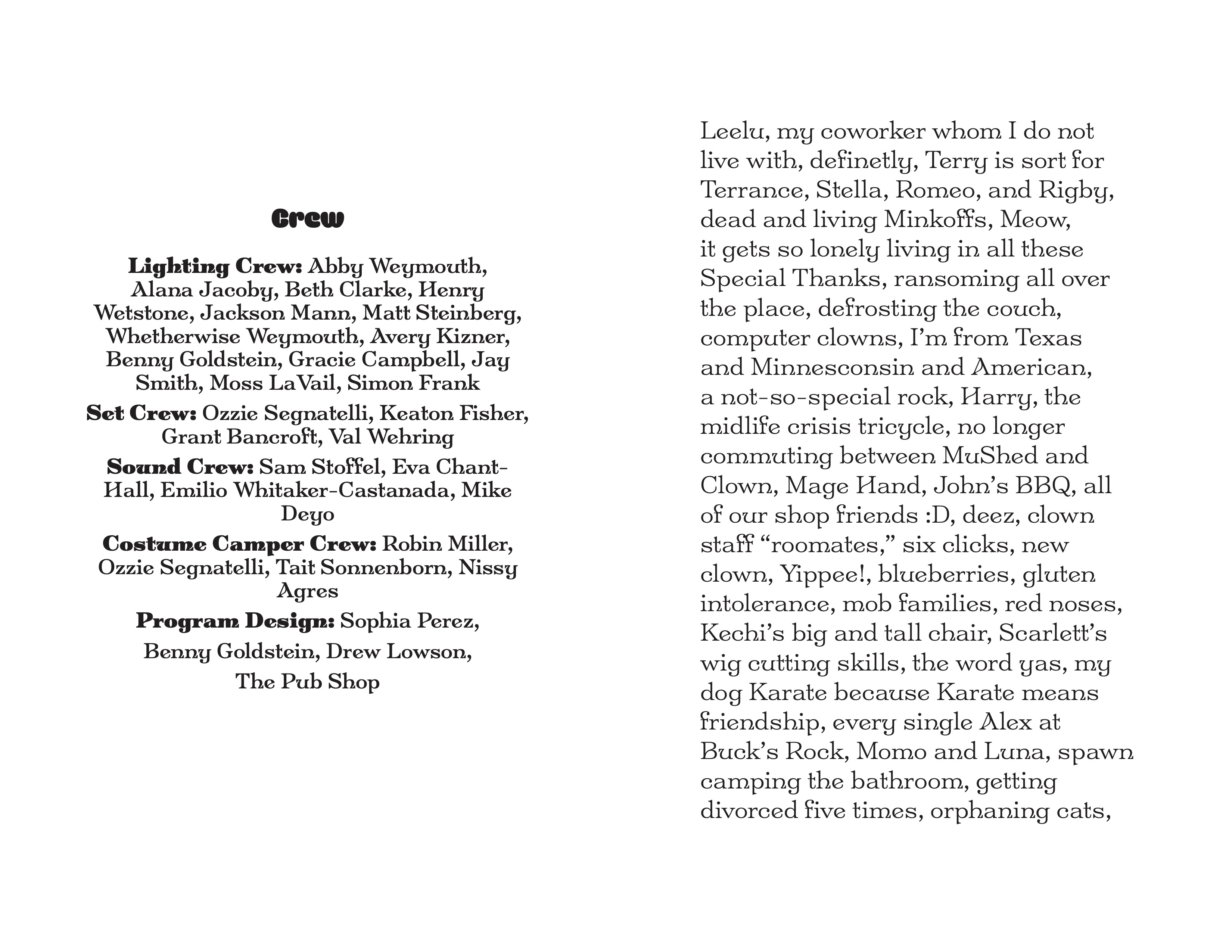 | Lighting Crew | Jasper Weymouth | Credtied as "Whetherwise Weymouth." |