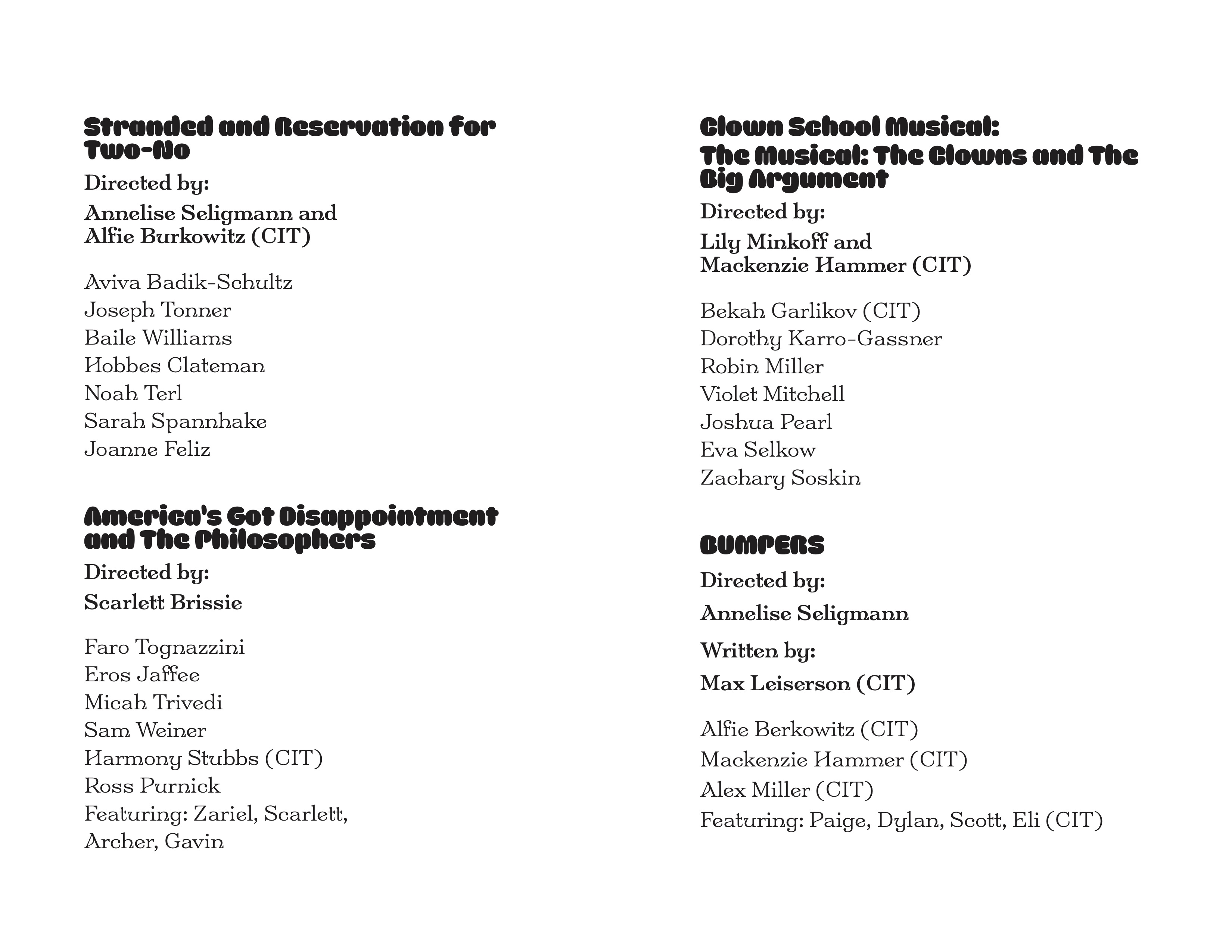 | Playwright | Max Leiserson | CIT |