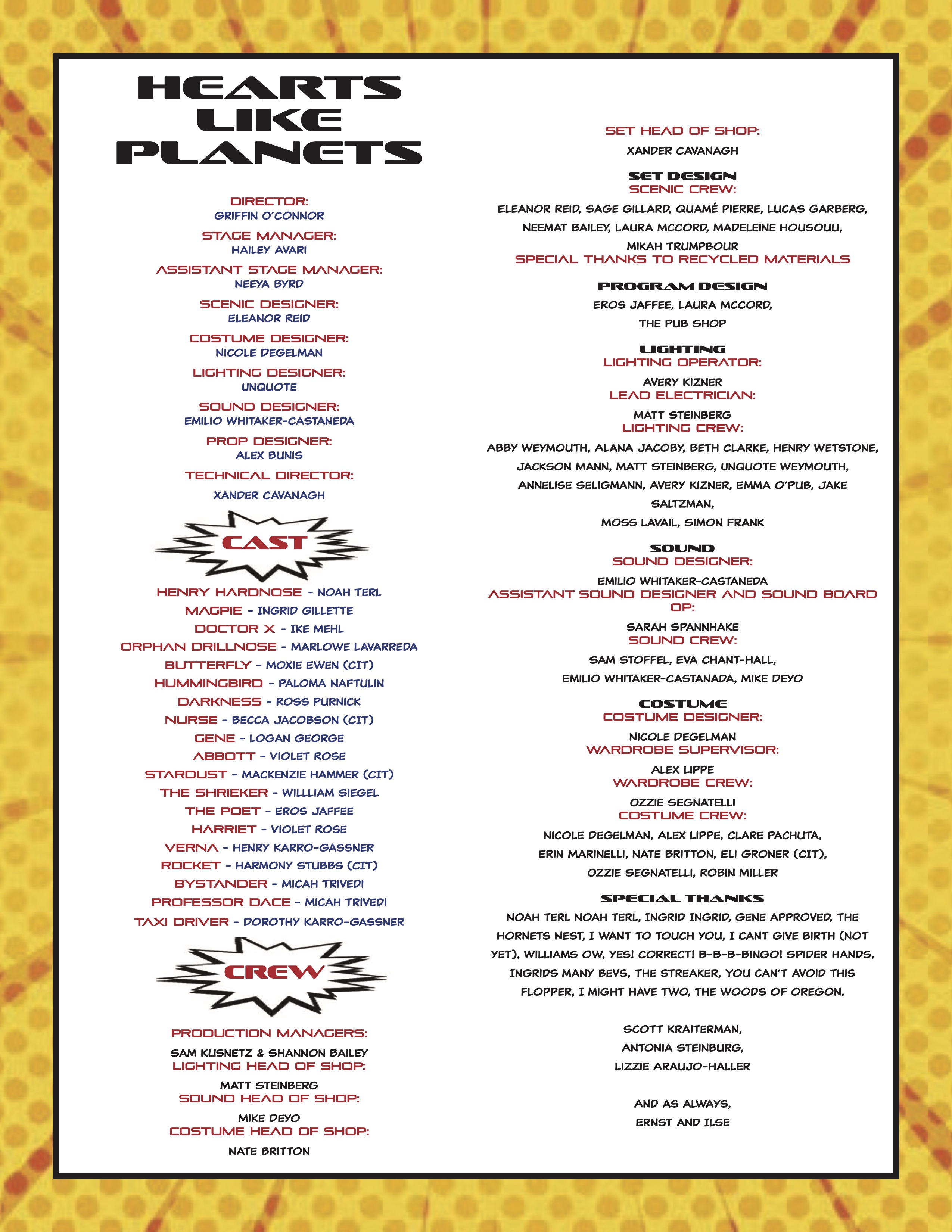 | Lighting Crew | Jasper Weymouth | Credited as "Unquote Weymouth." |