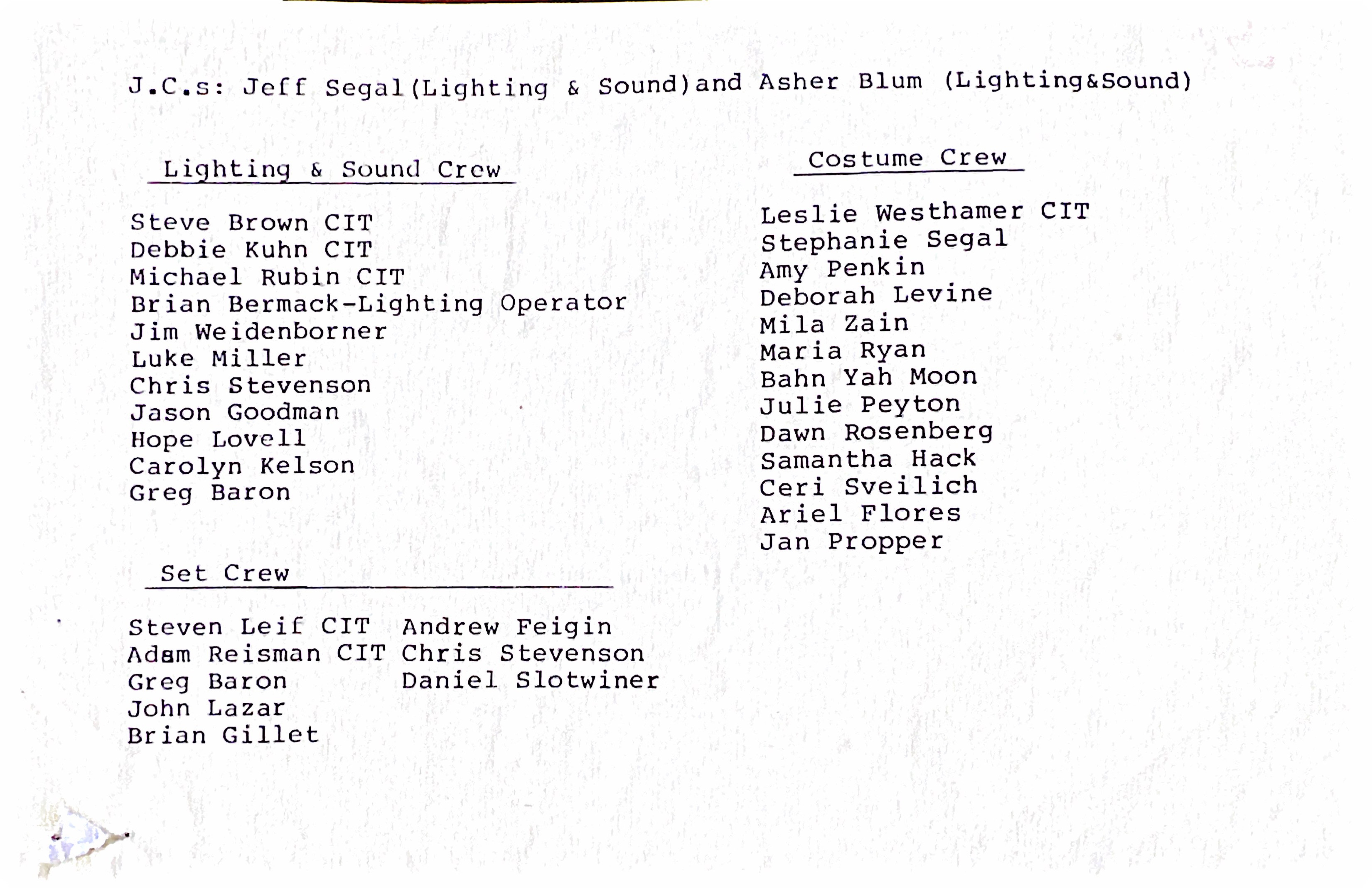 Presented by the Theatre shop in 1985 at the Summer Theater.