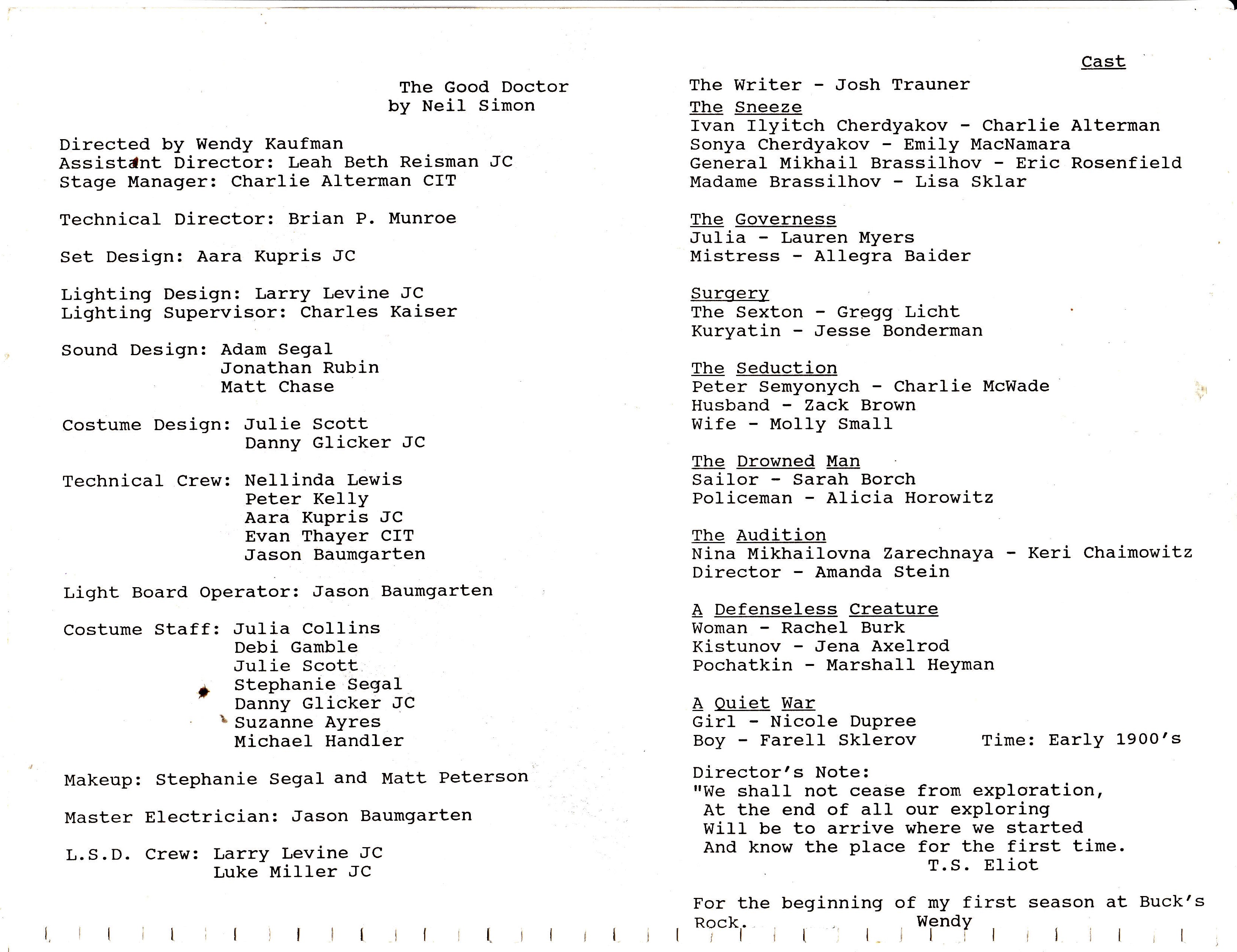 Presented by the Theatre shop on Jul 11, 1990 at the Actors' Studio.