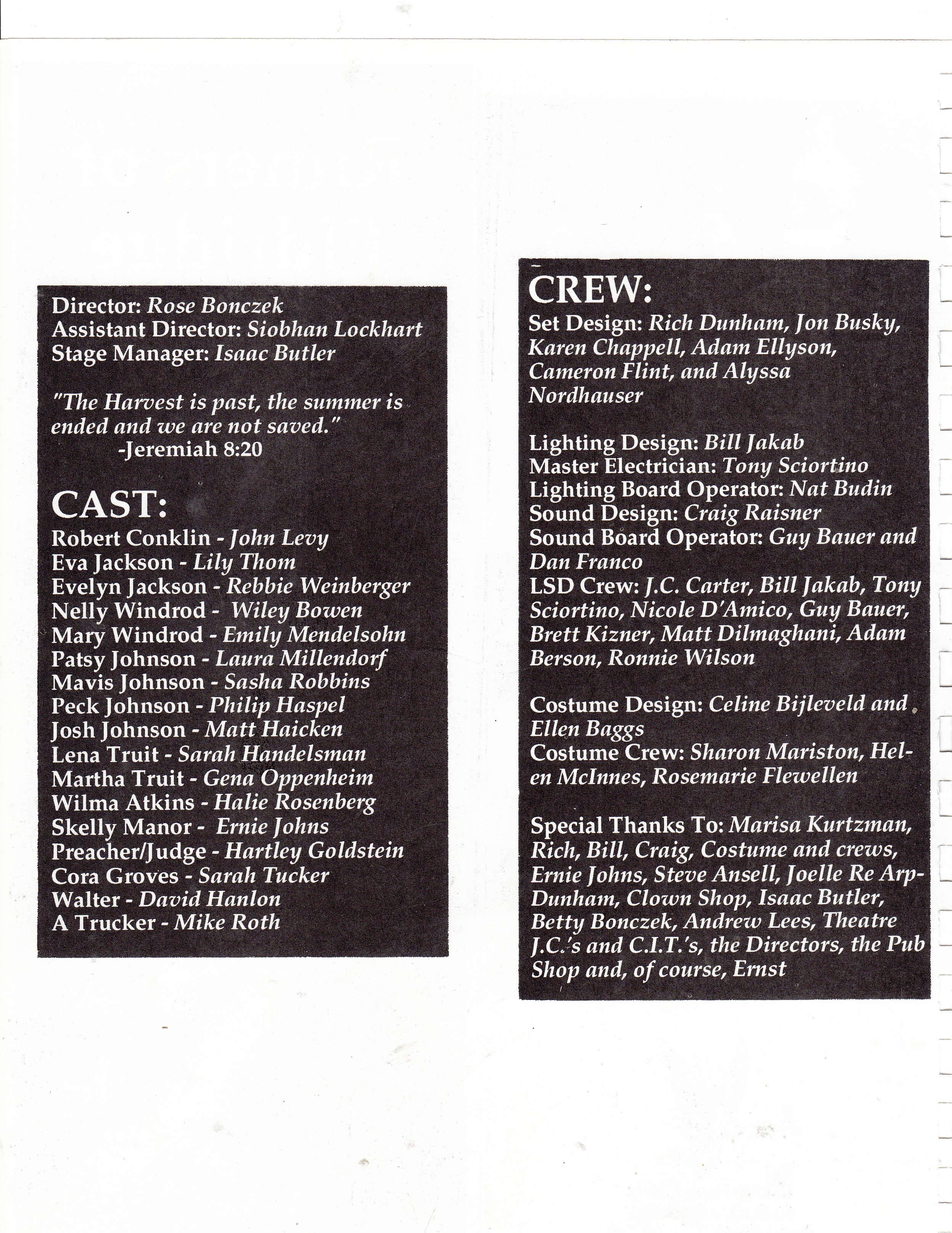 | Light Board Operator | Nat Budin | |