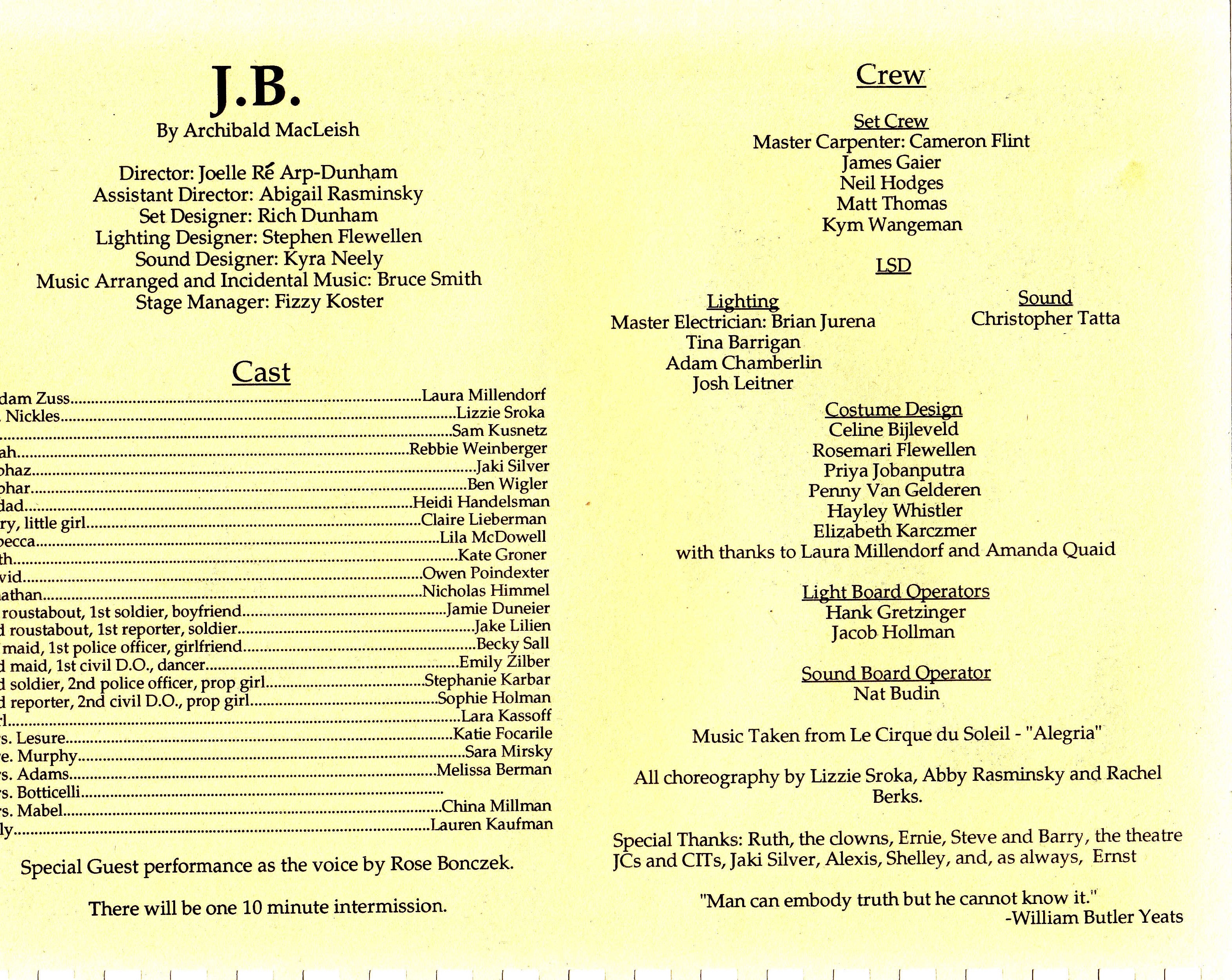 Presented by the Theatre shop on Jul 13, 1996 at the Summer Theater.