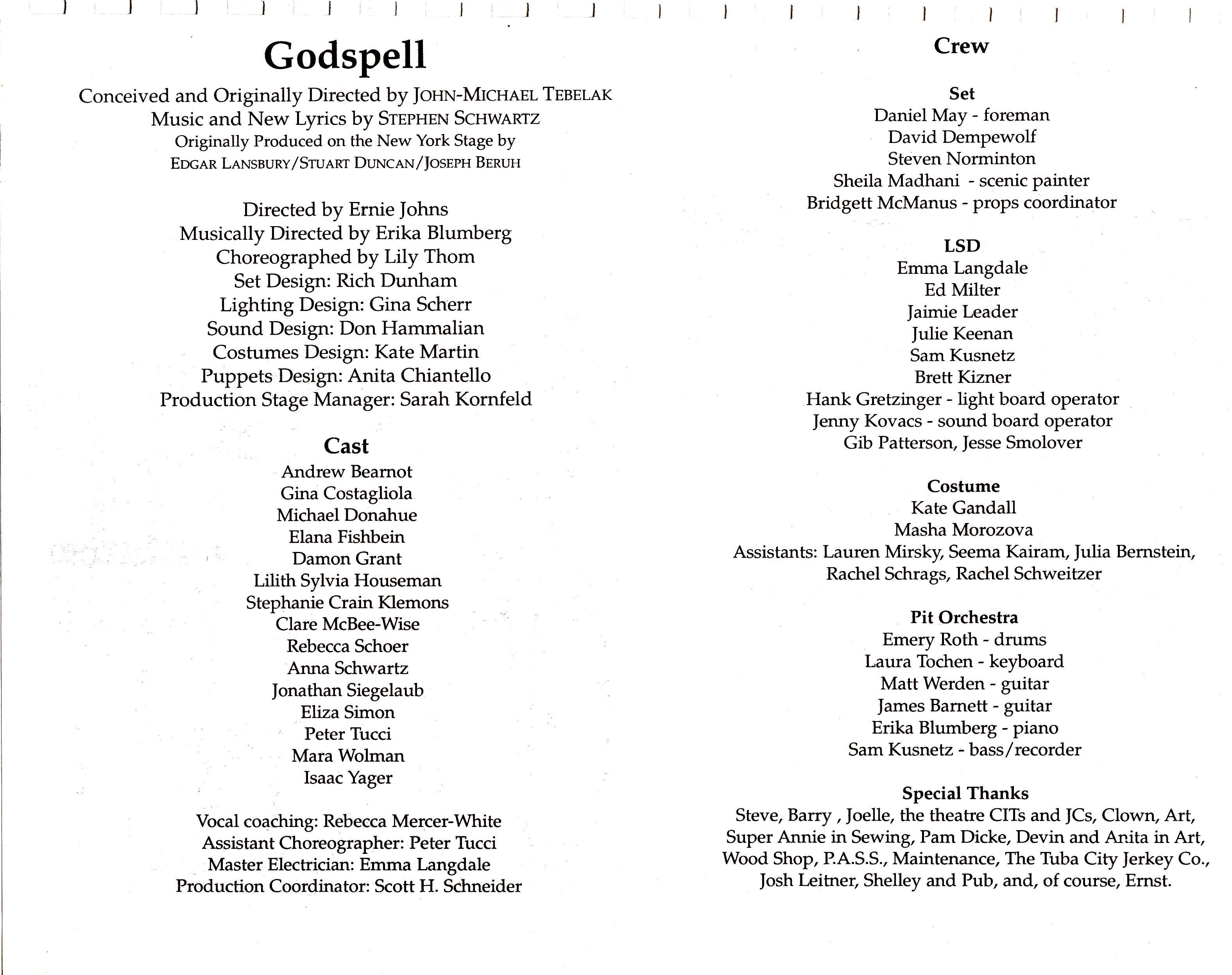 | Sound Operator | Jennifer "Jenny" Kovacs | |