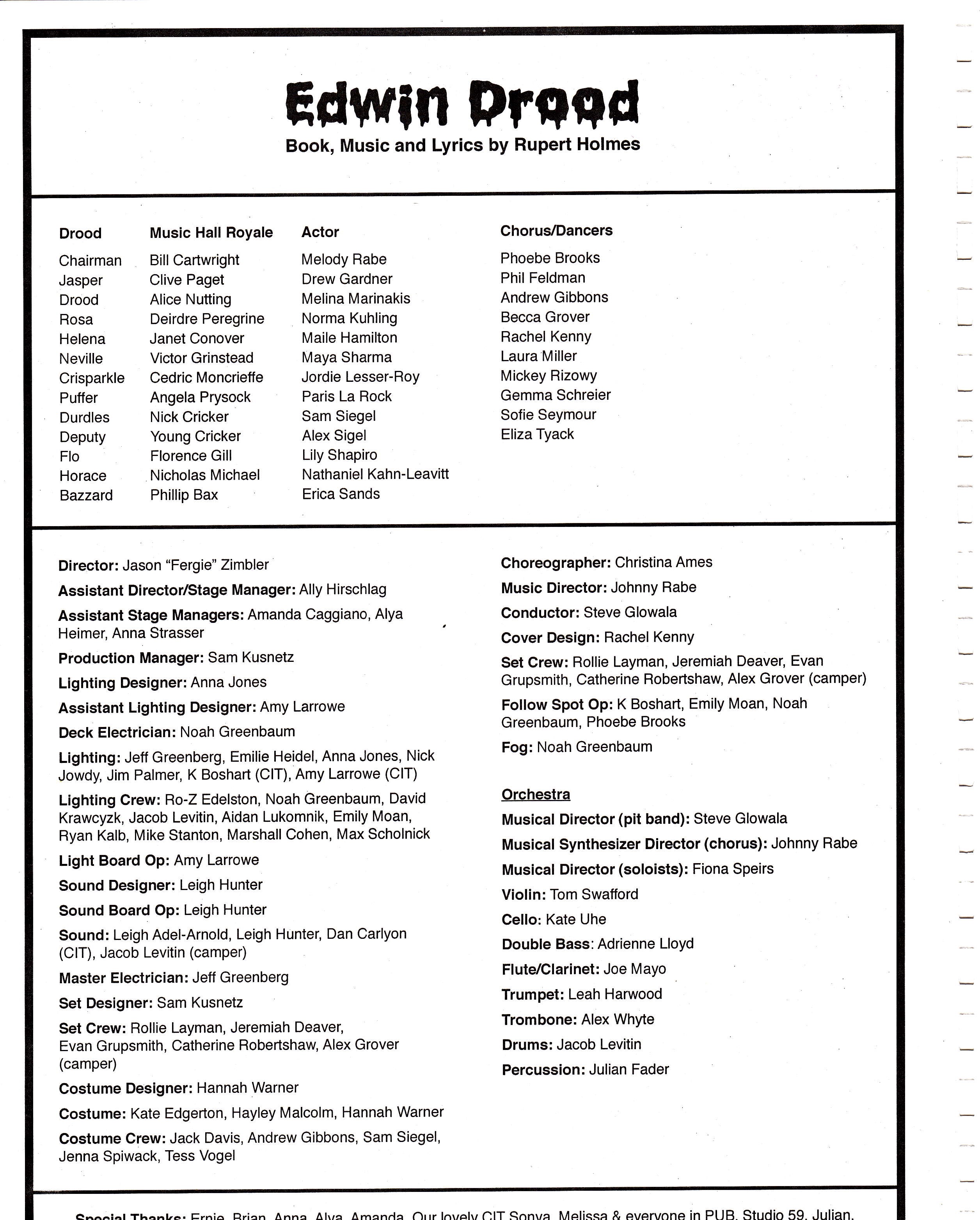 | Follow Spot Operator | Shane Moan | Credited as "Emily Moan." |