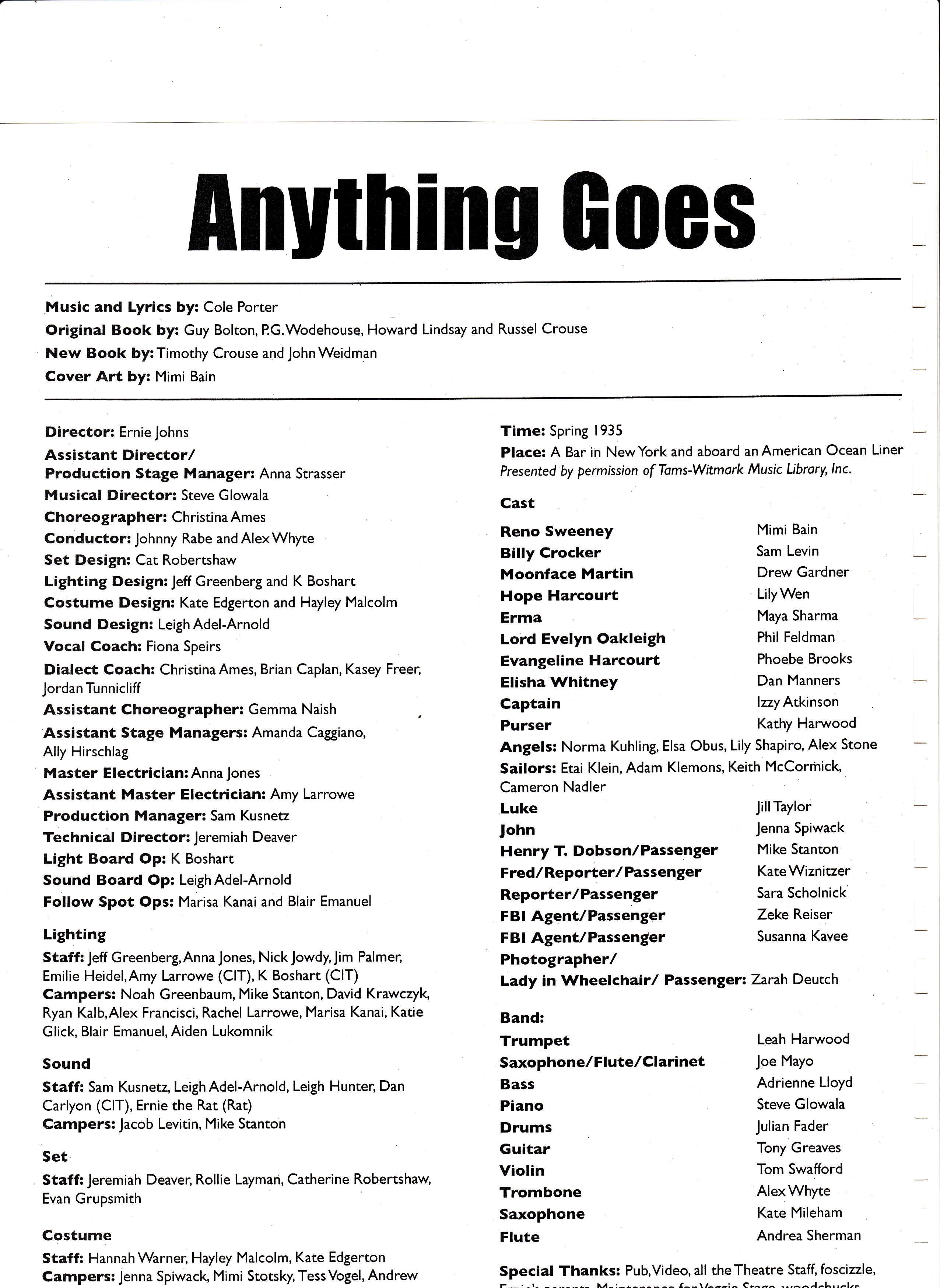 | Assistant Stage Manager | Allison "Ally" Hirschlag | |