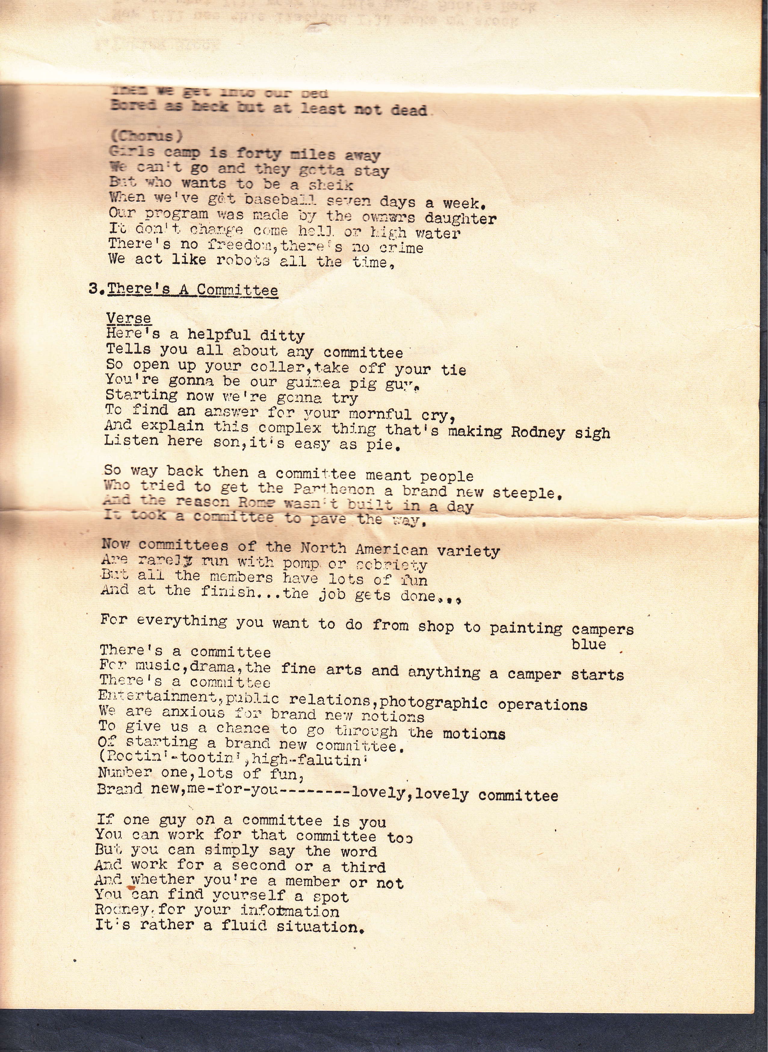 To The Cast; Shep Ginandes and Rho Barrett would like to thank the members of the cast for makin [sic] "Call Me Farmer" a truly co-operative production through their ideas, suggestions, and willing spirit.