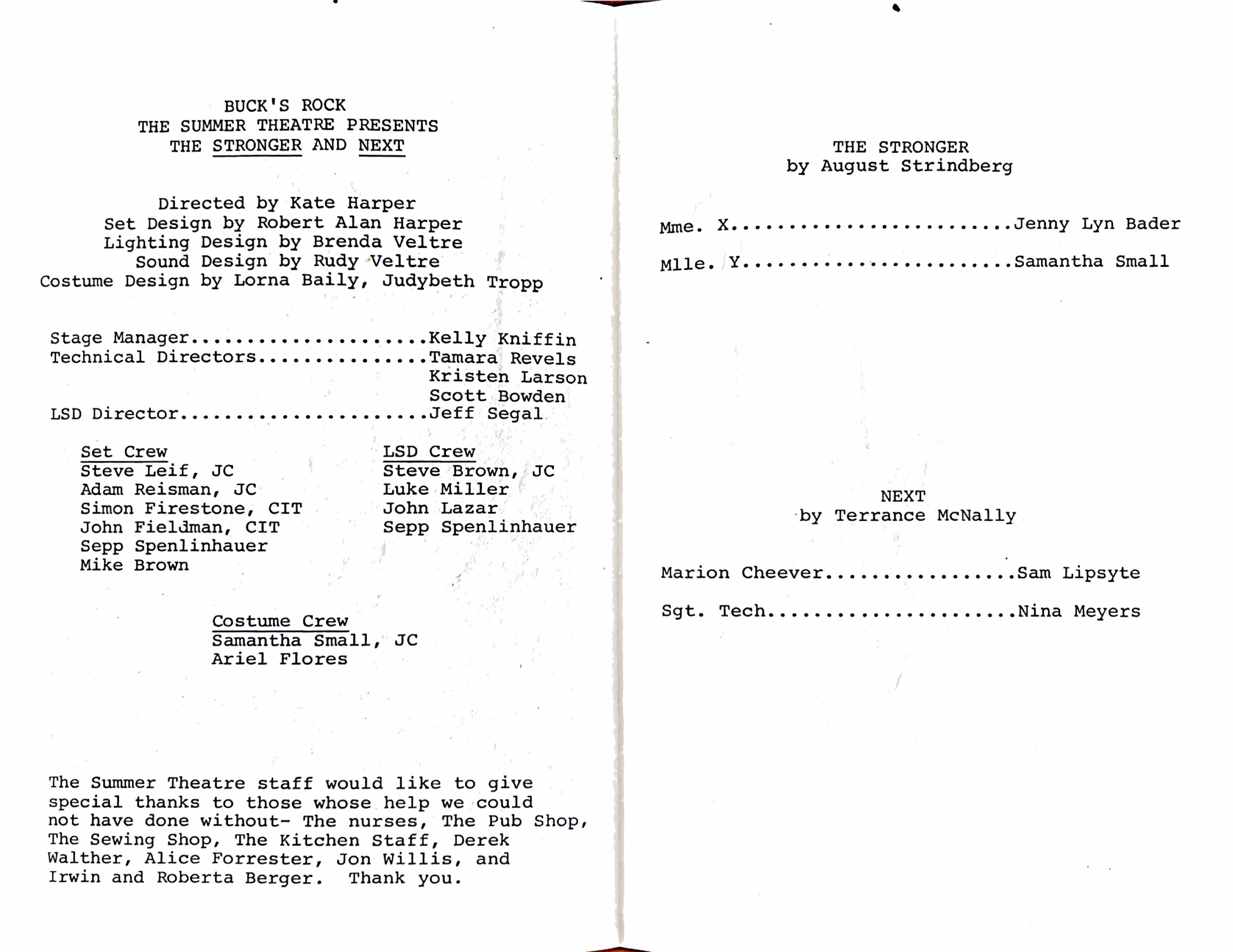 Presented by the Theatre shop on Jul 05, 1986 at the Summer Theater.