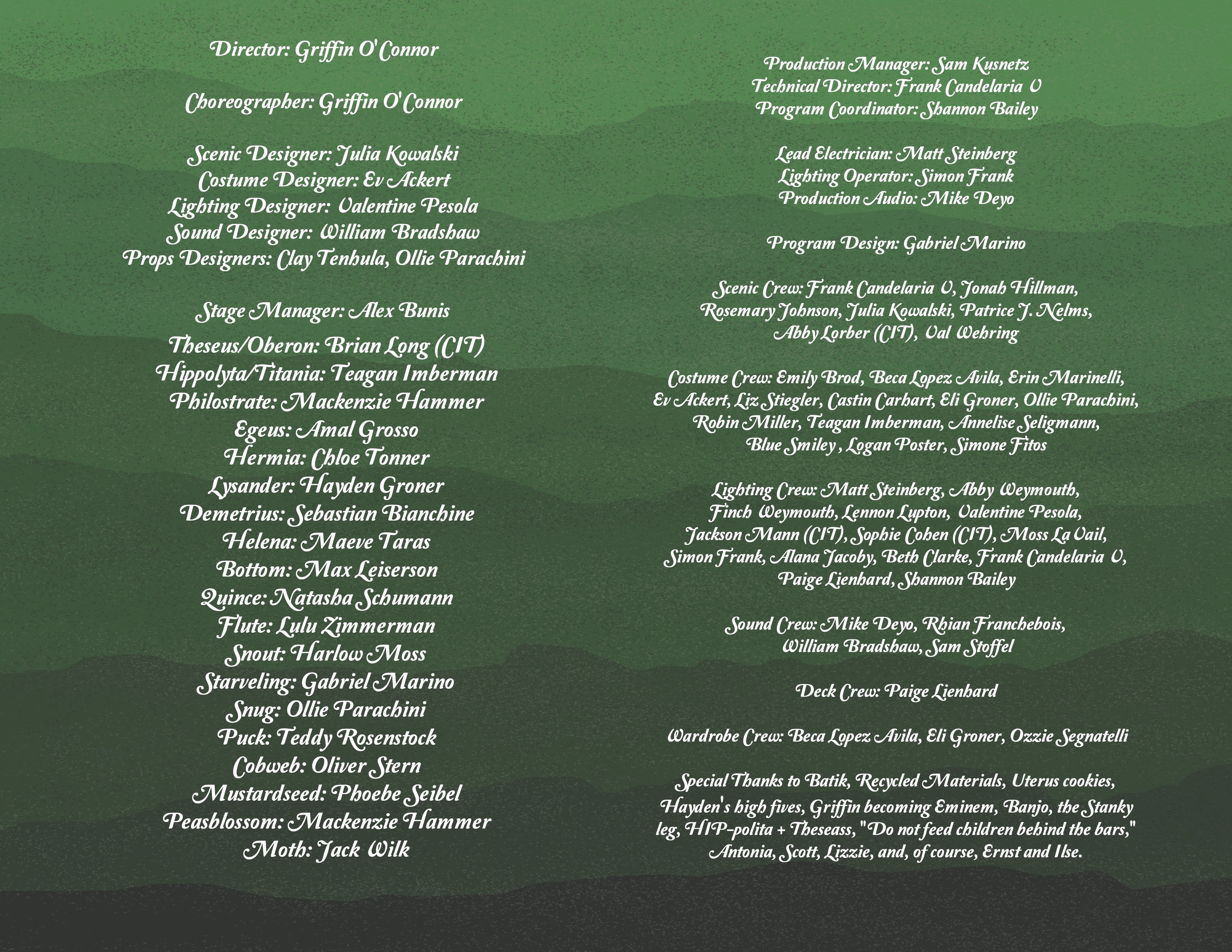 | Lighting Crew | Jasper Weymouth | Credited as "Finch Weymouth." |